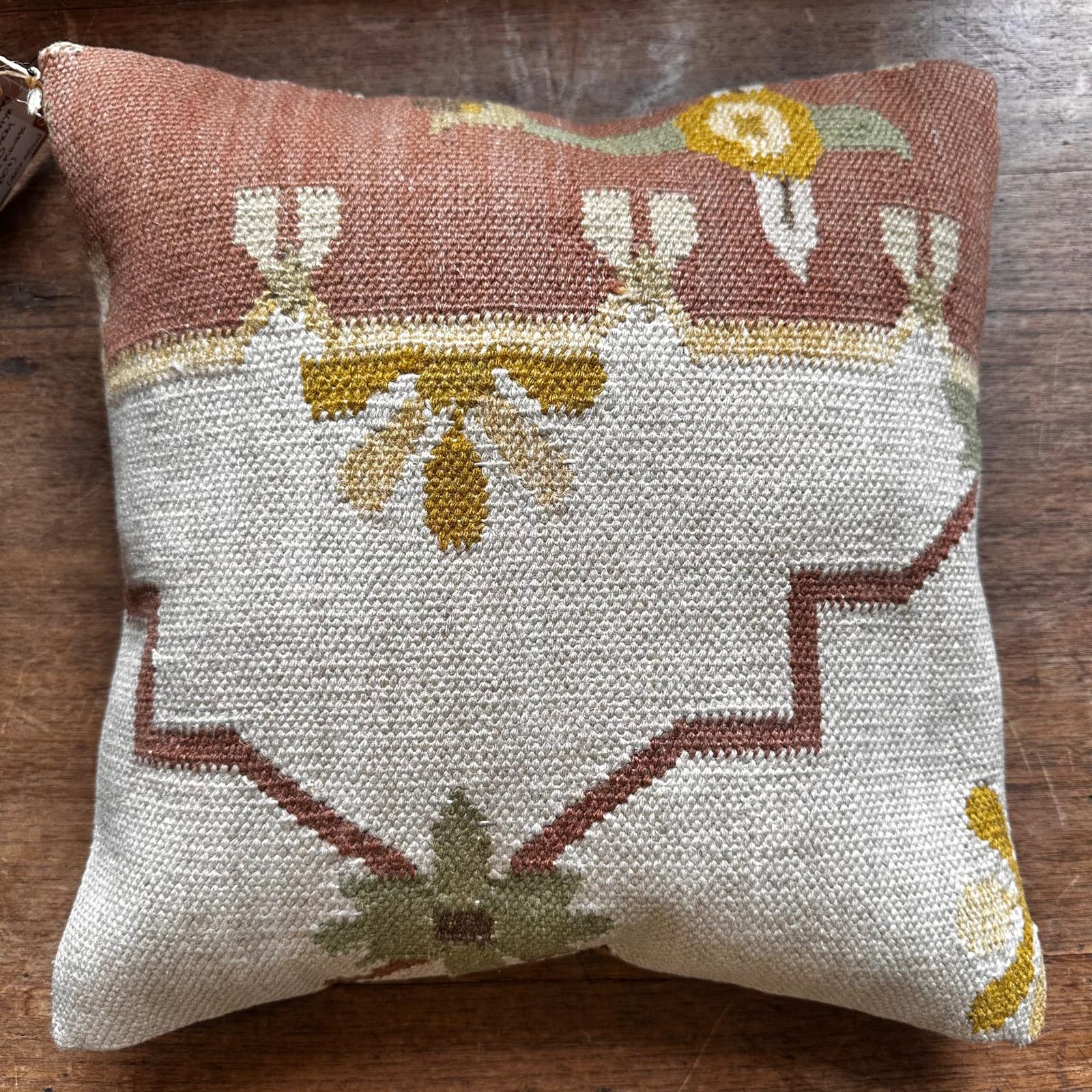 Cushion 40cm x 40cm repurposed from beyond repair handmade Turkish carpets and Kilims.
