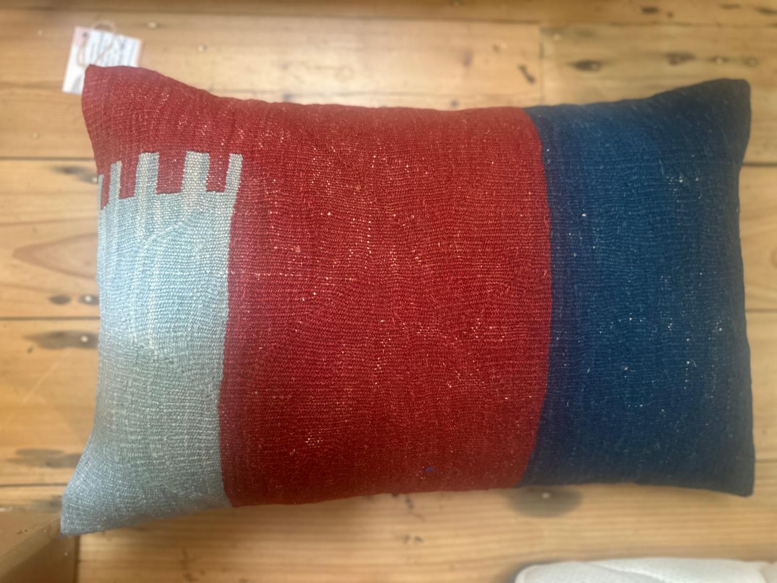 Cushion 60cm x 40cm repurposed from handmade Turkish carpets and kilims.